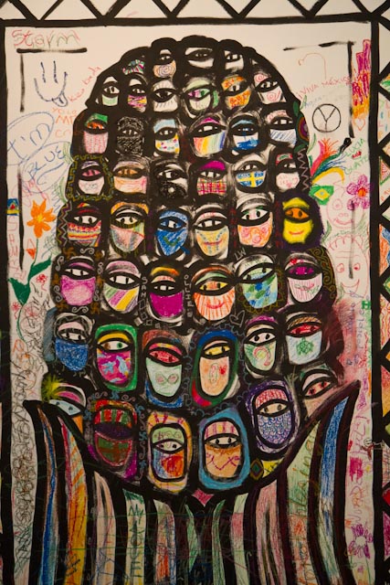 Visitors were invited to add their own colours to the Sandanista graffiti installation designed by overall Exhibition Designer, Lucy Algar.