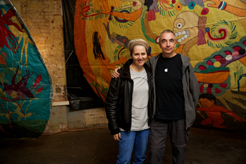 Interactive designers, Jamie Griffiths and Rob Scharein, with the large scale Festival de Barriletes Gigantes de Skumpango Sacatepeequez (Guatemala). Photo by Rita Leistner