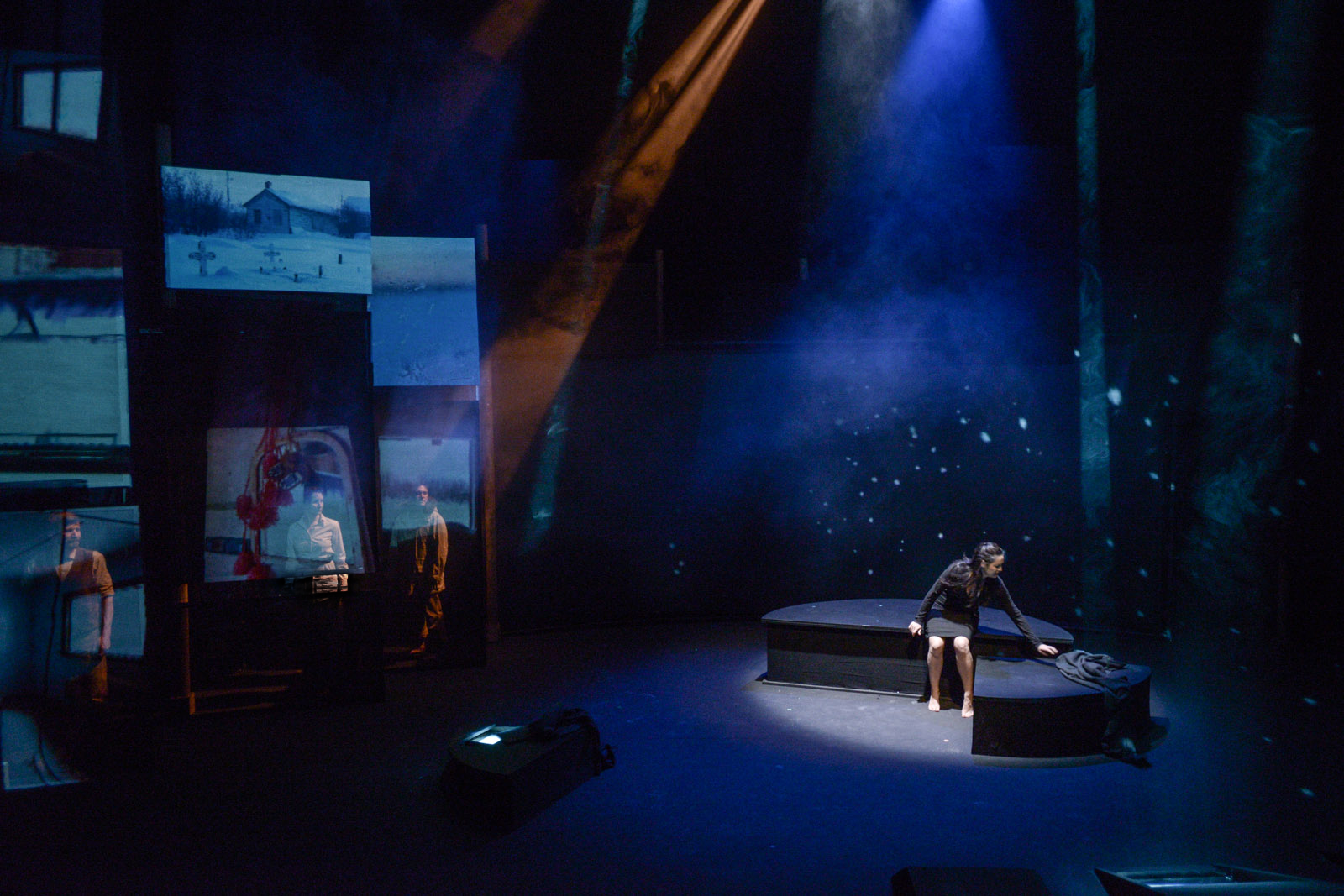 "The Edward Curtis Project is a distinct blend of it’s narrative and it’s imagery. Both the lighting and the visuals – photos and occasionally subtle video being projected onto one of a dozen or more different sized screens (and sometimes the cast members themselves) – make for a unique and wonderful visual experience. It’s always cool to see shows take strong advantage of modern technologies in a big, immersive way that doesn’t feel like an add-on or gimmick and, here, the visuals in The Edward Curtis Project are as much a part of the experience of the show as the narrative itself." The Edward Curtis Project, The Production, Ottawa, 2013